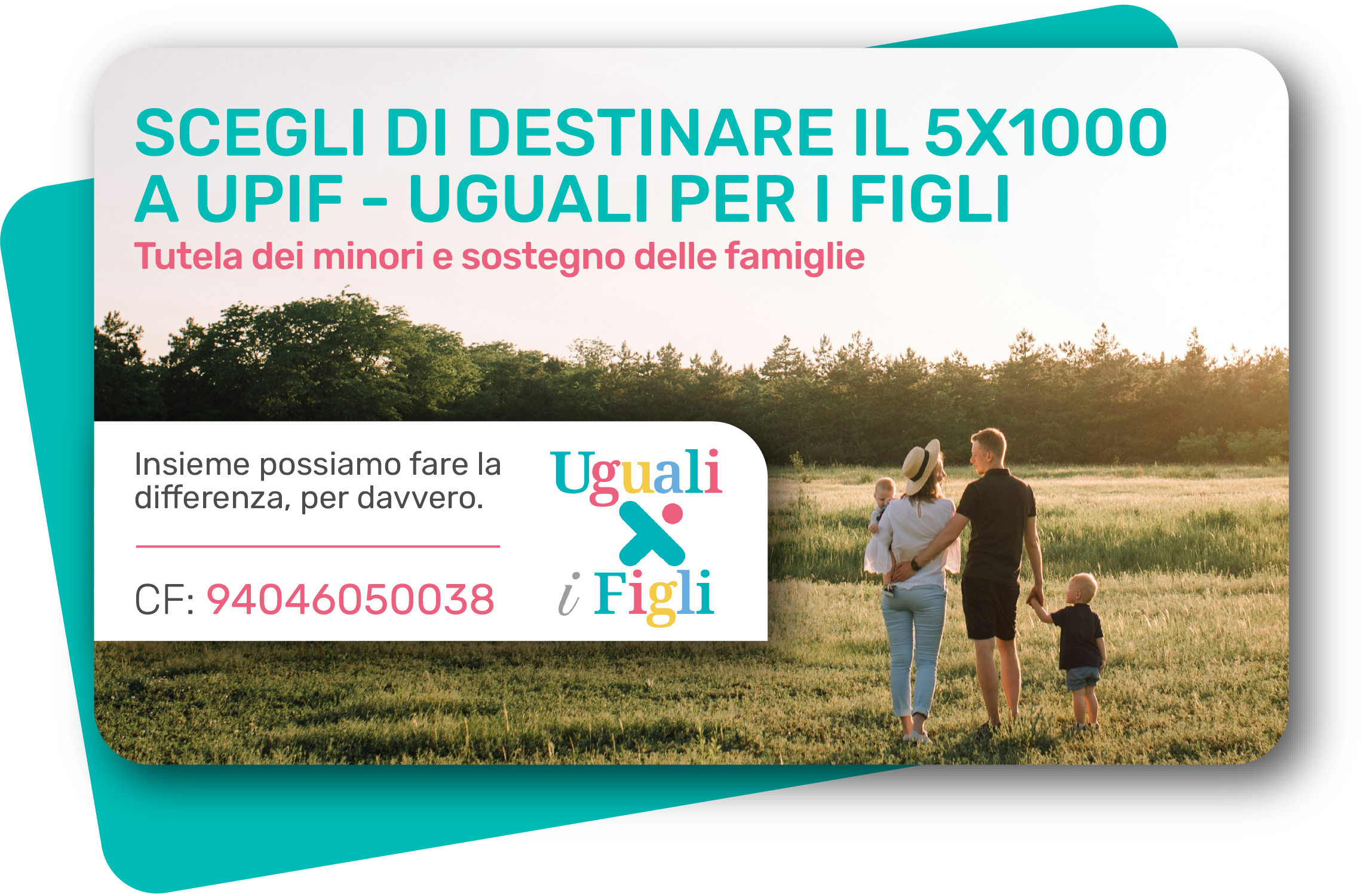 Con il tuo 5×1000 sostieni Uguali per i Figli: un’associazione dedicata alla tutela dei minori e al sostegno delle famiglie.